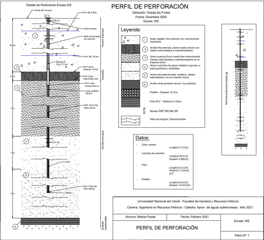 - Habilitación, diseño hidráulico de la perforación, definición de bomba más adecuada y estudios de los parámetros característicos de los acuíferos.